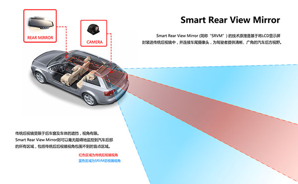 Full screen Smart Rear View Mirror £ºThe main function of SRVM is to make up the blind zone of traditional rear view mirror and shield problem to provide a securer vision field to the driver. However, in the near future, the rear view mirror will be replaced by the camera. The OFILM SRVM provides rich image assemble and visual angle switch, available to be upgraded with ADAS function.